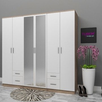 Modern ve özgün tasarımıyla, odanıza aydınlık bir görüntü kazandıran 6 Kapılı 4 Çekmeceli Gardrop modelimiz şimdi stoklarımızda. Kullanışlı askılıklar ve çekmece detaylarıyla kullanım rahatlığı sağlayan bu gardırop, kaliteli malzeme ve sağlam işçilikle üretilmiştir. Odanızın ölçülerine uygun, istediğiniz ebatta üretim imkanı ve online ödeme fırsatı ile sahip olabilirsiniz.