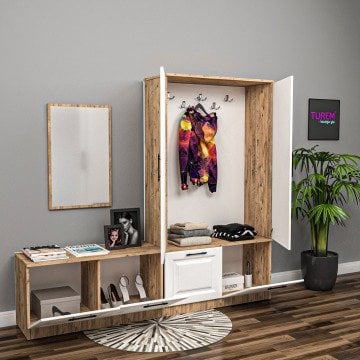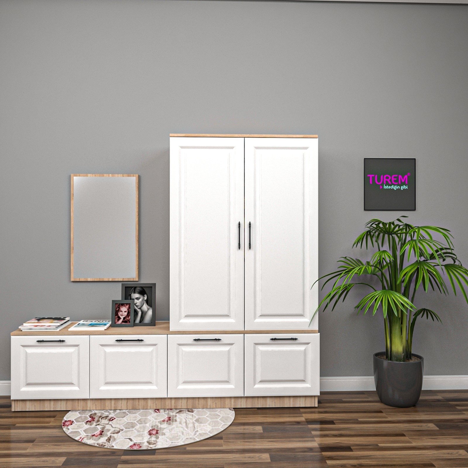 Kıyafetlerinizi depolamanızın yanı sıra şık tasarımlarıyla evinize şık bir görüntü kazandıracak olan Portmanto modellerimiz, son dönemlerde birer tasarım harikasına dönüşmeye başlıyor ve akıllı tasarımlarıyla göz dolduruyor. Dar alanlara özel çekmeceli, klasik menteşeli kapaklı veya çekmecelerle zenginleştirilmiş çok raflı olan Portmanto Modellerimiz ihtiyacınıza ve yaşam alanlarınızın ölçülerine en uygun modelleri Turem Mobilya'da satışta. Üstelik isteğinize göre ölçülendirme ve renklendirme fırsatları da sizleri bekliyor.