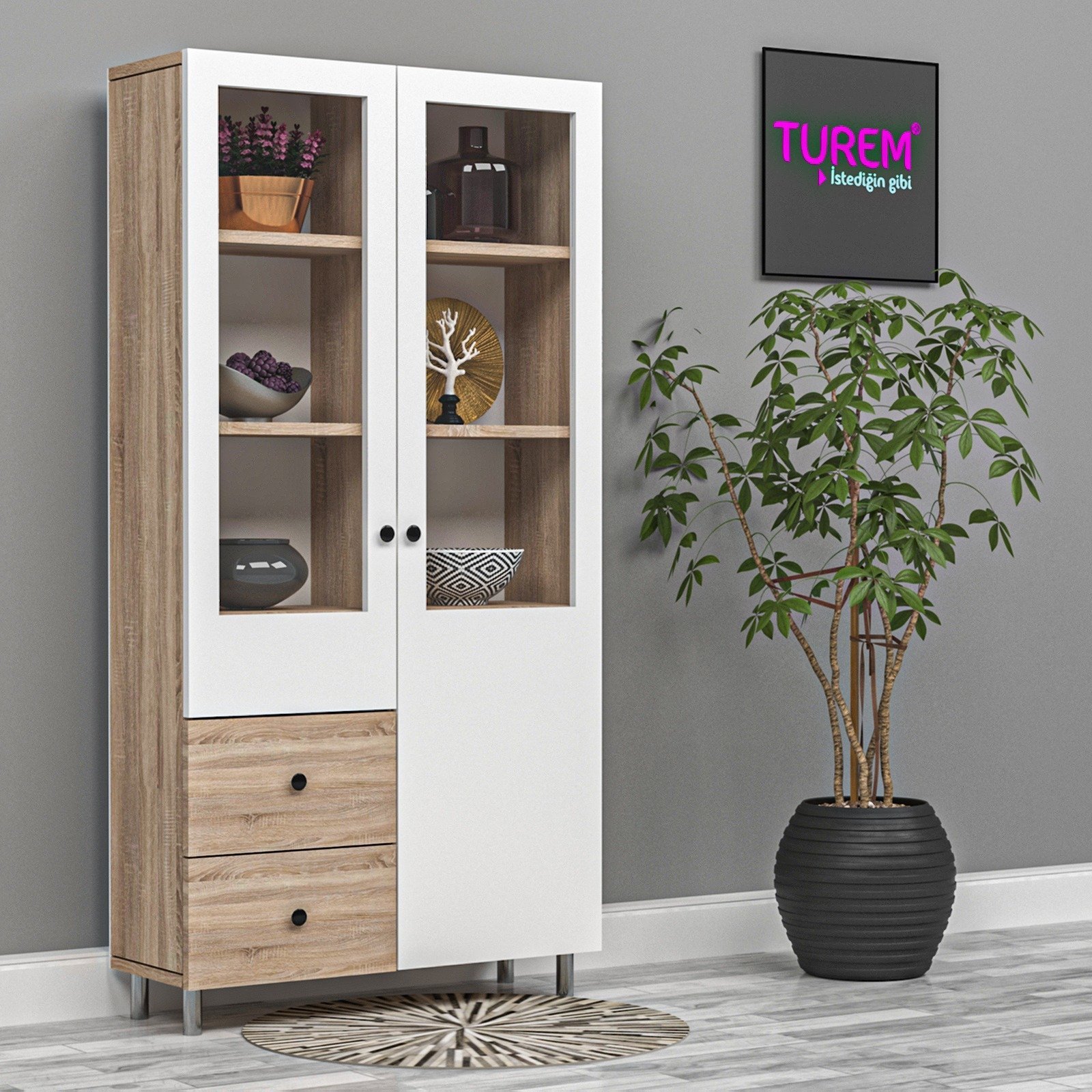 Aksesuarlarınızı depolamanızın yanı sıra şık tasarımlarıyla evinize şık bir görüntü kazandıracak olan Vitrin modellerimiz, son dönemlerde birer tasarım harikasına dönüşmeye başlıyor ve akıllı tasarımlarıyla göz dolduruyor. Dar alanlara özel çekmeceli, klasik menteşeli kapaklı veya çekmecelerle zenginleştirilmiş çok raflı olan Vitrin Modellerimiz ihtiyacınıza ve yaşam alanlarınızın ölçülerine en uygun modelleri Turem Mobilya'da satışta. Üstelik isteğinize göre ölçülendirme ve renklendirme fırsatları da sizleri bekliyor.